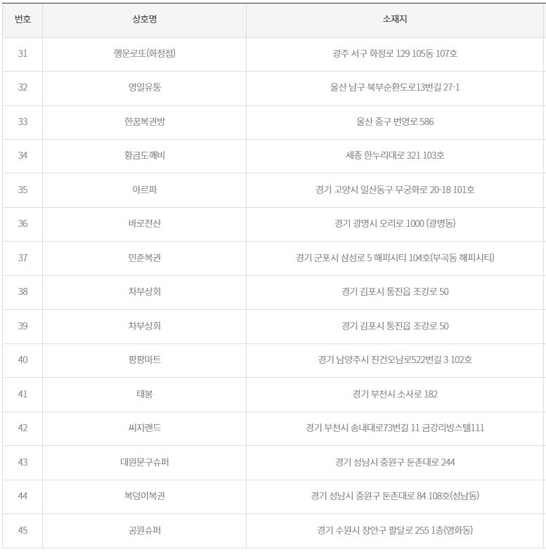 1등 당첨금의 지급기한은 추첨일로부터 1년까지이며, 로또 1096회의 1등 당첨지역은 아래와 같습니다.