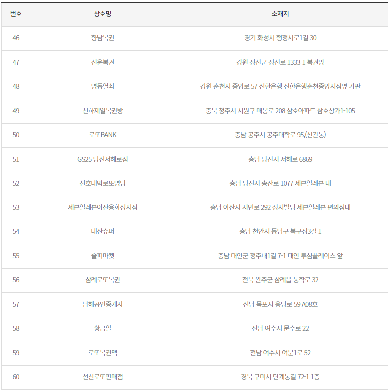 | 로또 당첨번호 조회 1등 당첨지역 등 | 1095회 (0) | 2023.11.25 |