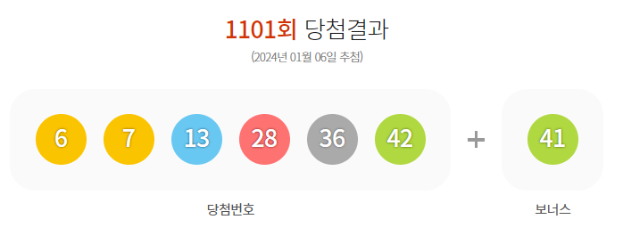 2024년 01월 06일, 제1101회 로또 당첨번호 및 이번주 로또 1등 당첨 지역 발표되었습니다. 1등 당첨지역, 황금손, 명당 지점 정보 등 빠르게 안내드리겠습니다.