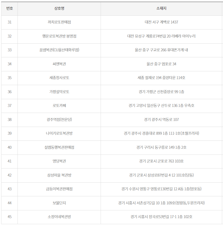 1등 당첨금의 지급기한은 추첨일로부터 1년까지이며, 로또 1101회의 1등 당첨지역은 아래와 같습니다. 서울 1곳, 인터넷 1곳, 대구 1곳, 부산 2곳, 경기 5곳, 전북 1곳, 전남 1곳, 충남 1곳 등 총 13곳입니다.