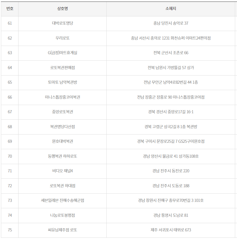 이번회차 2등은 총 75게임으로 인당 당첨금액은 60,681,964원입니다. 당첨번호 5개 일치 및 보너스 숫자 일치하신 분들입니다.