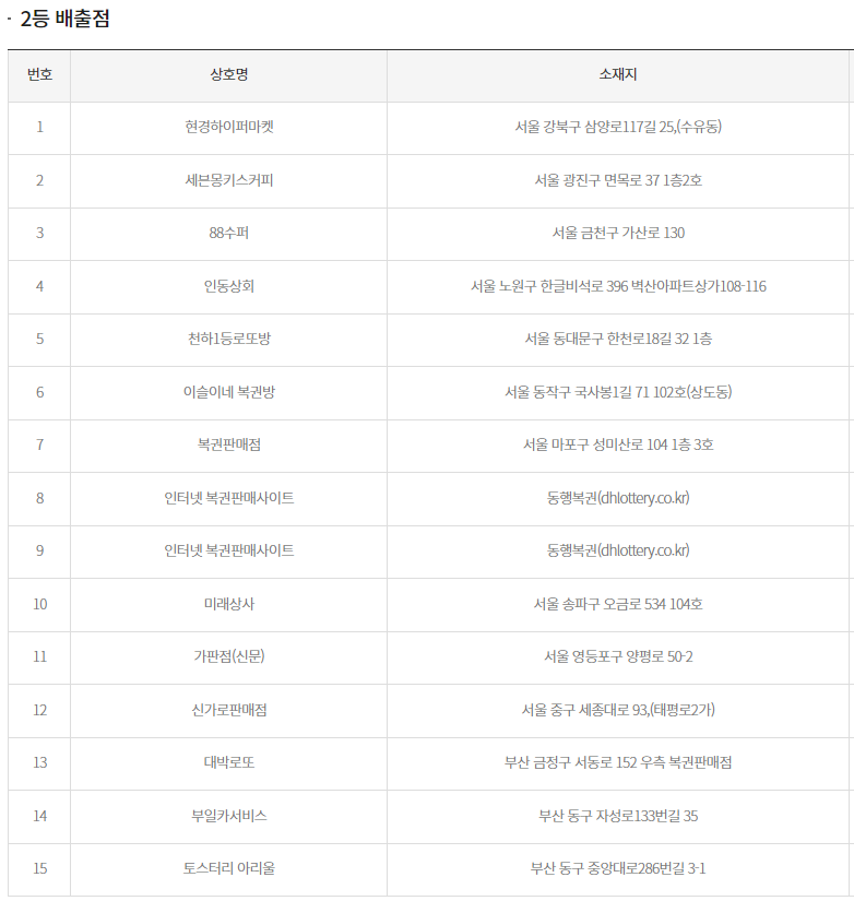 로또 2등과 3등은 지역 농협은행(중앙회) 각 지점에서, 4등과 5등은 일반 로또 판매점에서 당첨금을 지급받을 수 있습니다. 로또복권의 당첨금 지급기한은 지급 개시일로부터 1년입니다.