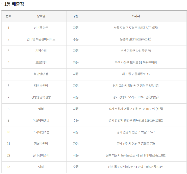 | 1100회 로또 당첨번호 조회 1등 및 2등 당첨지역 등 (0) | 2023.12.30 |