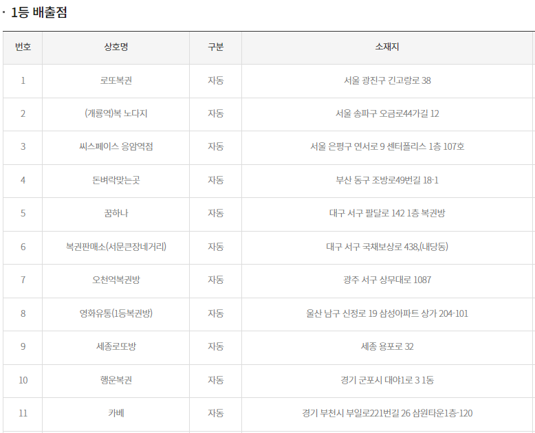 1102회 이번주 로또 당첨 지역 | 명당